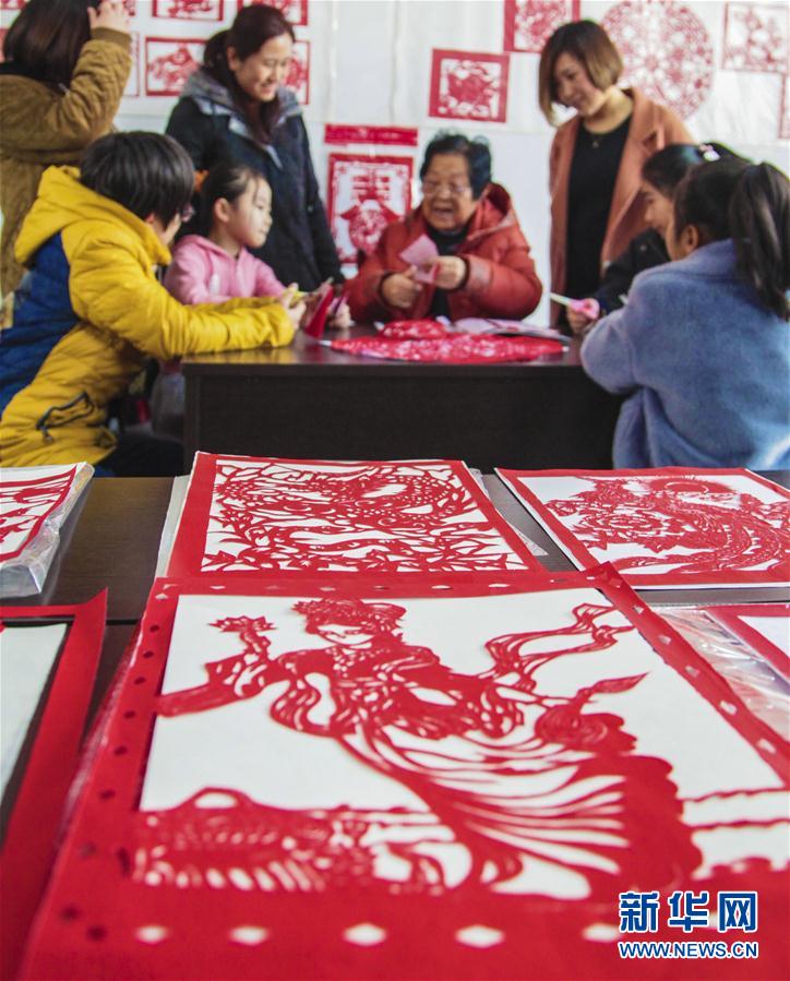 1月29日,社区居民参加剪纸活动。当日,河北省永清县组织社区居民开展“送福迎新春,剪纸庆佳节”活动,通过多彩民俗喜迎新春佳节。新华社记者李晓果摄