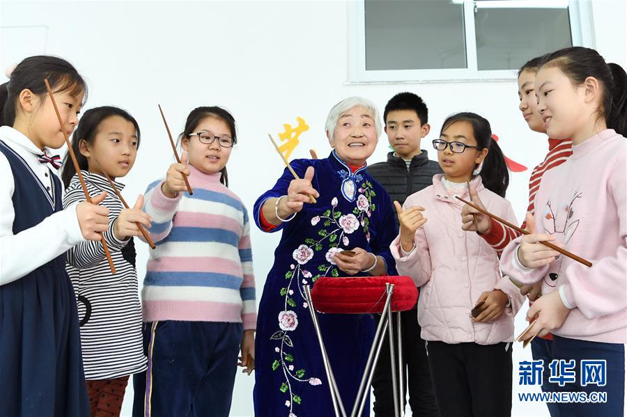 1月30日,乐亭大鼓艺人肖云霞(中)在乐亭县青少年校外活动中心向学生们传授乐亭大鼓表演技艺。寒假期间,河北省乐亭县青少年校外活动中心组织开展“传统文化扮靓寒假生活”系列公益活动,通过开设书法、民族舞蹈、茶艺等特色培训班,丰富孩子们的寒假生活,推动传统文化传承。新华社记者 牟宇 摄