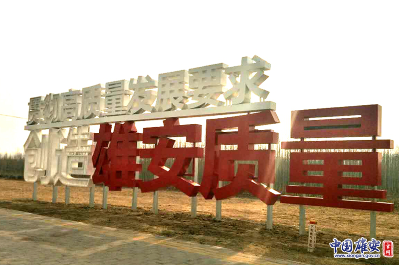 立体感很强的金属大字,象征着雄安建设者努力奋斗,将宏伟蓝图变成现实。中国雄安官网记者崔利杰 摄