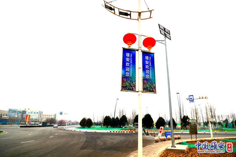 雄安新区沿街两侧刀旗的主题内容“雄安欢迎您”十分醒目。中国雄安官网记者刘东尧 摄