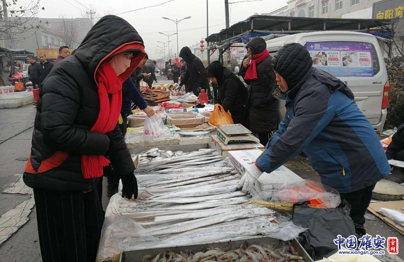 2月3日,安新县安新镇的早市一条街,带鱼等海产品供应充足,不少市民赶来选购。李振海 摄