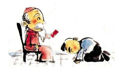 3.拱手礼:多是平辈间的拜年,男女有别。标准的男子姿势是右手成拳,左手包住;女子右手在上,左手在下,但不抱拳,只压手。