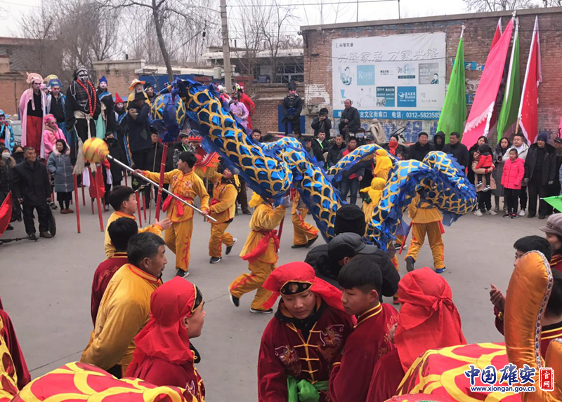 雄安新区赵北口镇,一条彩色长龙在表演者手中上下翻飞,变幻出各种造型。中共赵北口镇党委、赵北口镇人民政府供图
