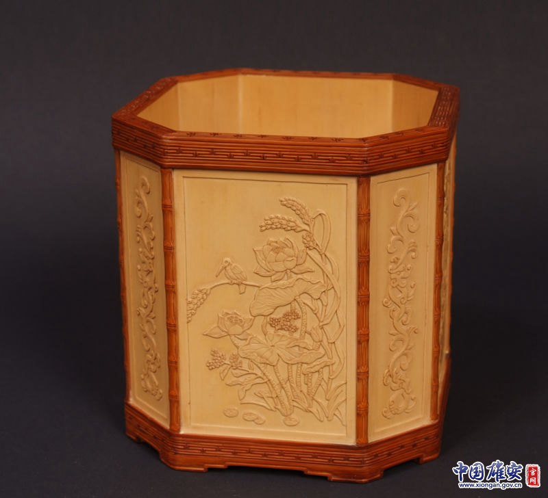 京簧竹刻是清代北京宫廷竹簧工艺。历史悠久,器物古朴文雅,具有很高的历史文化价值。作品突出了传统宫廷吉祥纹饰,融入了传统文化韵味,雕刻精细,栩栩如生。