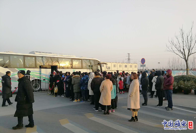 游客井然有序地排队等候摆渡车。中国雄安官网记者孙丹 摄