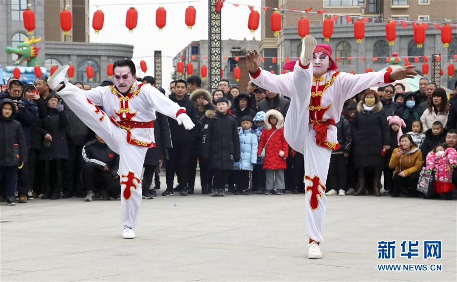 2月10日,民间艺人在河北沧州市新华区举办的“民俗文化节”活动上进行即兴武术表演。当日是春节长假最后一天,各地举行的假日活动丰富多彩。新华社发(周洋 摄)