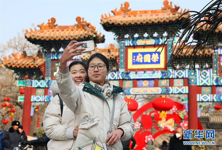 2月11日,游客在石家庄市正定古城游玩。 春节期间,河北石家庄正定古城吸引各地游客前来观光游览,感受浓浓的年味儿。近年来,石家庄正定县通过恢复古城风貌、提升产业水平以及实施文化资源与旅游资源整合的方式,打造古城文化品牌,使旅游产业成为该县支柱型产业。新华社发(梁子栋 摄)