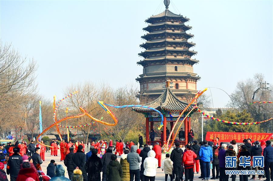 2月11日,游客在石家庄市正定古城观看民俗表演。 春节期间,河北石家庄正定古城吸引各地游客前来观光游览,感受浓浓的年味儿。近年来,石家庄正定县通过恢复古城风貌、提升产业水平以及实施文化资源与旅游资源整合的方式,打造古城文化品牌,使旅游产业成为该县支柱型产业。新华社发(张晓峰 摄)