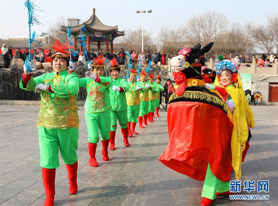 2月11日,表演者在石家庄市正定古城进行民俗表演。 春节期间,河北石家庄正定古城吸引各地游客前来观光游览,感受浓浓的年味儿。近年来,石家庄正定县通过恢复古城风貌、提升产业水平以及实施文化资源与旅游资源整合的方式,打造古城文化品牌,使旅游产业成为该县支柱型产业。新华社发(梁子栋 摄)