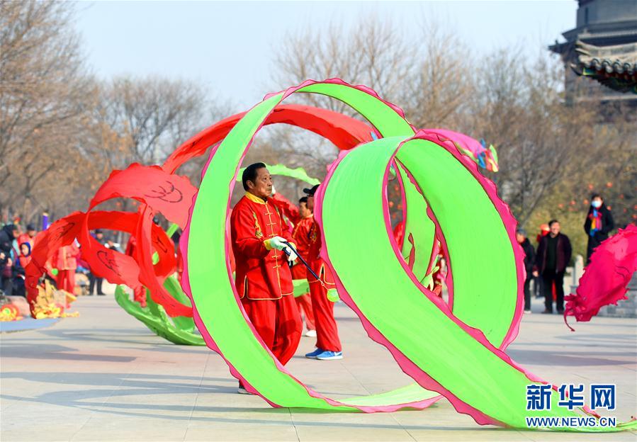 2月11日,表演者在石家庄市正定古城进行民俗表演。 春节期间,河北石家庄正定古城吸引各地游客前来观光游览,感受浓浓的年味儿。近年来,石家庄正定县通过恢复古城风貌、提升产业水平以及实施文化资源与旅游资源整合的方式,打造古城文化品牌,使旅游产业成为该县支柱型产业。新华社发(张晓峰 摄)