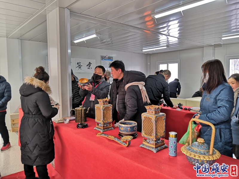 2019雄安新区嘉年华乐购区,工作人员向游客介绍景泰蓝工艺。中国雄安官网记者朱伟琳 摄