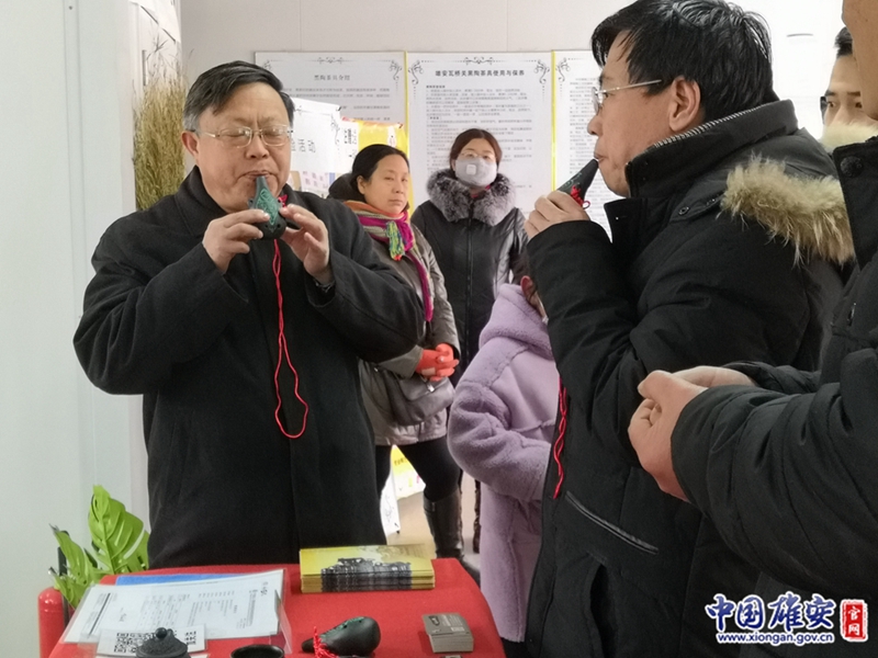 2019雄安新区嘉年华乐购区,游客试吹黑陶埙。中国雄安官网记者朱伟琳 摄