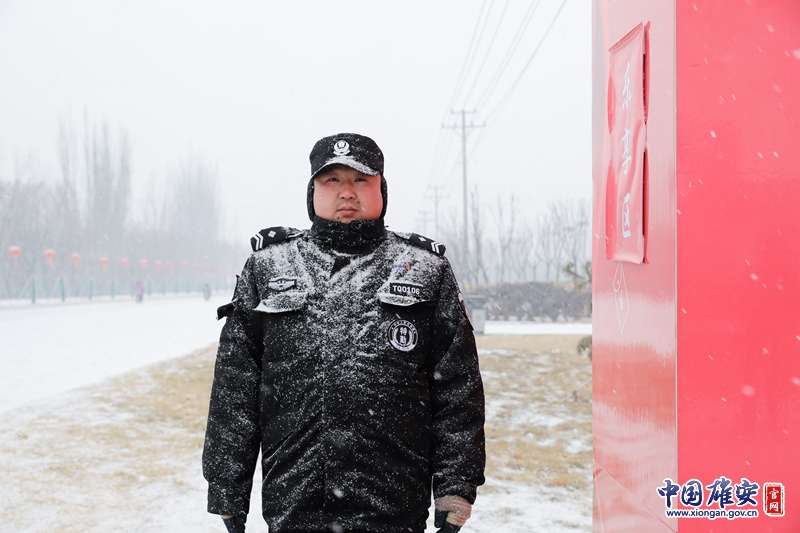 安保人员身上落满积雪依然坚守岗位。中国雄安官网记者毛鹤然 摄