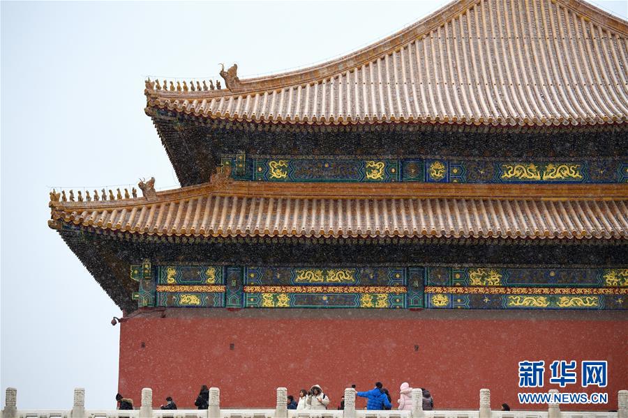2月12日,游客在北京故宫内赏雪。当日,北京降雪,大批游人来到故宫游览赏雪。新华社发(王琎 摄)