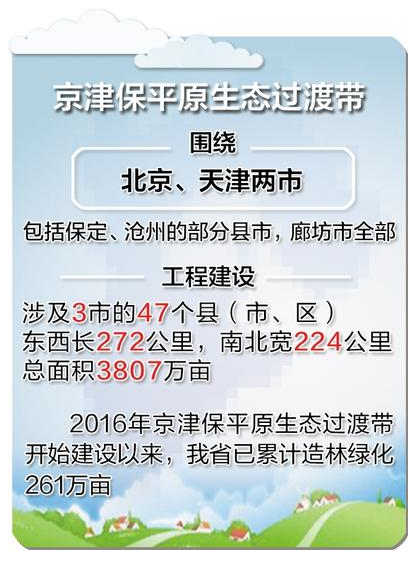 2016年京津保平原生态过渡带开始建设以来,我省已累计造林绿化261万亩。