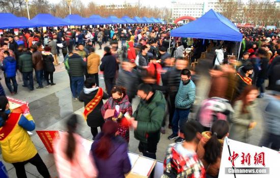 资料图:农民工在招聘会上找工作。中新社记者 翟羽佳 摄