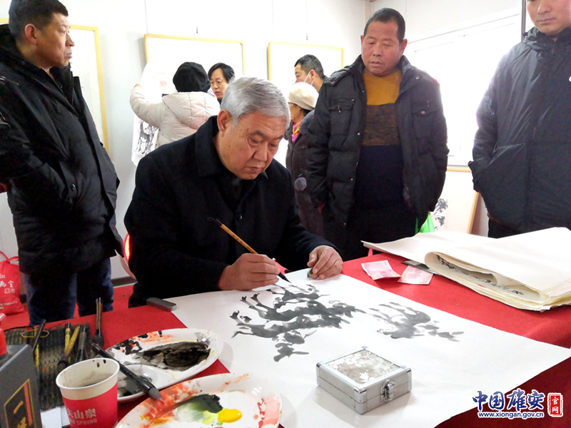 容城县画家王文明现场创作国画作品。中国雄安官网记者朱伟琳 摄