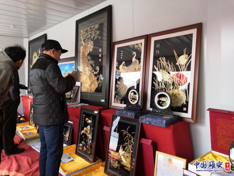 活动现场,游客在观赏芦苇画展品。中国雄安官网记者朱伟琳 摄