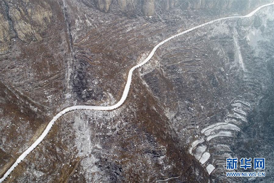 这是2月15日在河北省沙河市拍摄的太行山雪景(无人机拍摄)。近日,河北、山西等地迎来连续降雪。雪后太行山颜色素雅,宛如水墨画卷。新华社发(陈雷 摄)