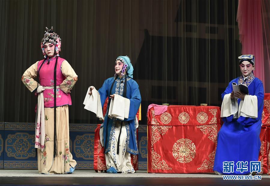 2月16日,在河北省三河市文化中心上演的“贺新春”评剧传统剧目展演活动中,唐山评剧院演员为当地群众带来评剧传统剧目《五女拜寿》,迎接元宵佳节。新华社记者 鲁鹏 摄