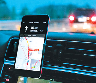 一位司机在进京的高速公路上使用智能手机导航系统。智能手机上的GPS定位、导航功能让人们出行更加便捷。资料图片