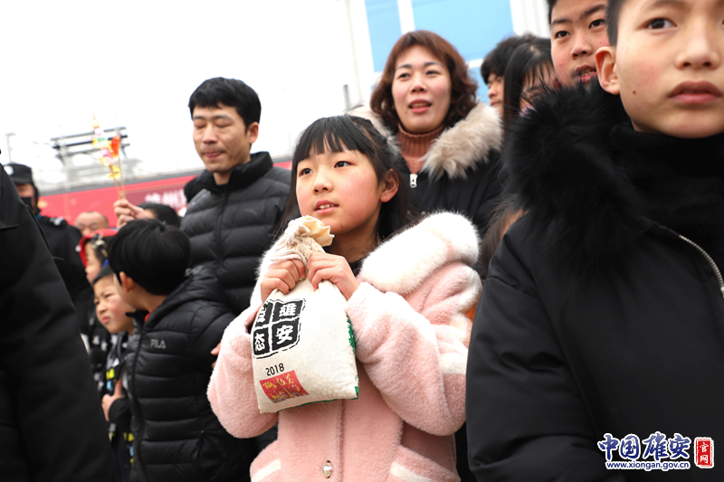 正月十五,2019雄安新区嘉年华活动上,小女孩通过互动游戏赢得“千年秀林”生态大豆奖品。中国雄安官网石萍婷 摄