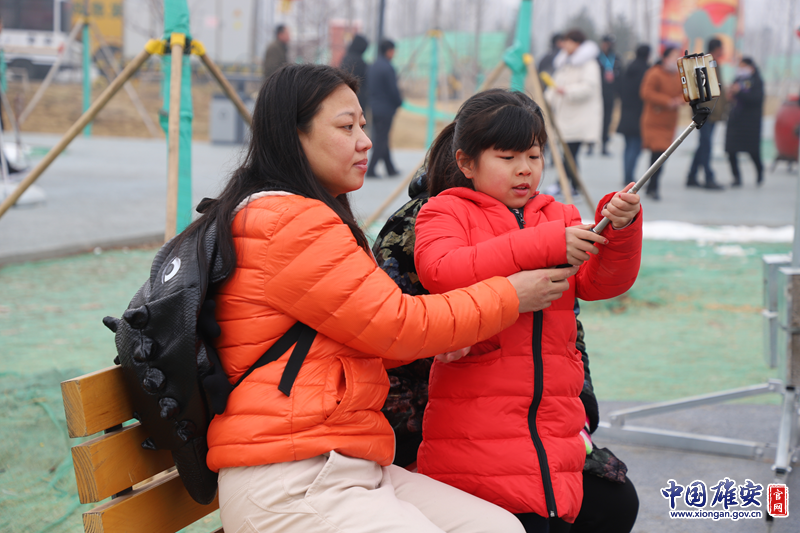 正月十五,2019雄安新区嘉年华现场,小女孩与家长合影留念。 中国雄安官网石萍婷 摄