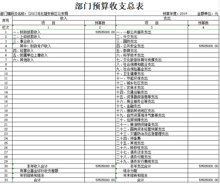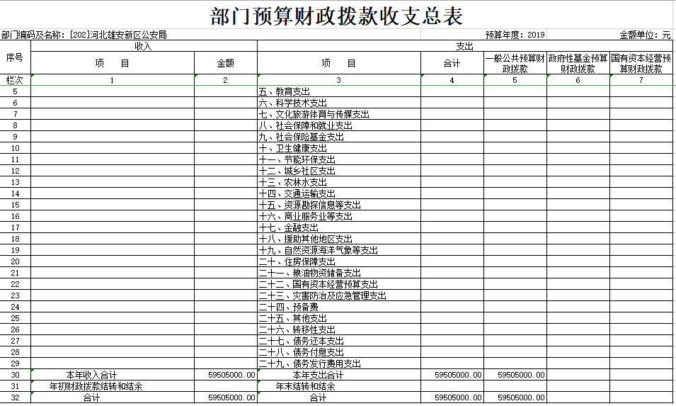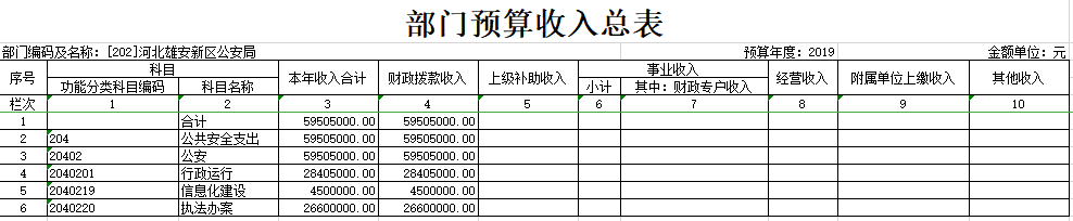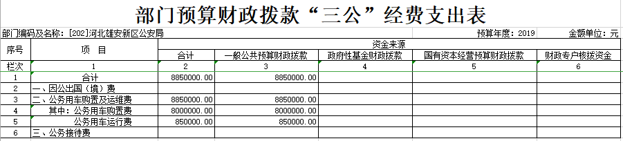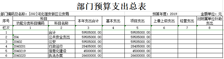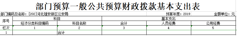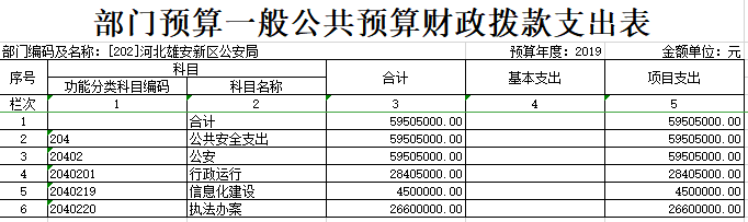 2019年河北雄安新区公安局预算公开表