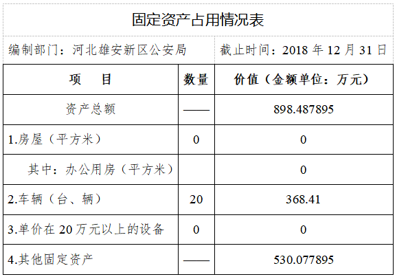 河北雄安新区公安局上年末固定资产金额为898.487895万元(详见下表)。
