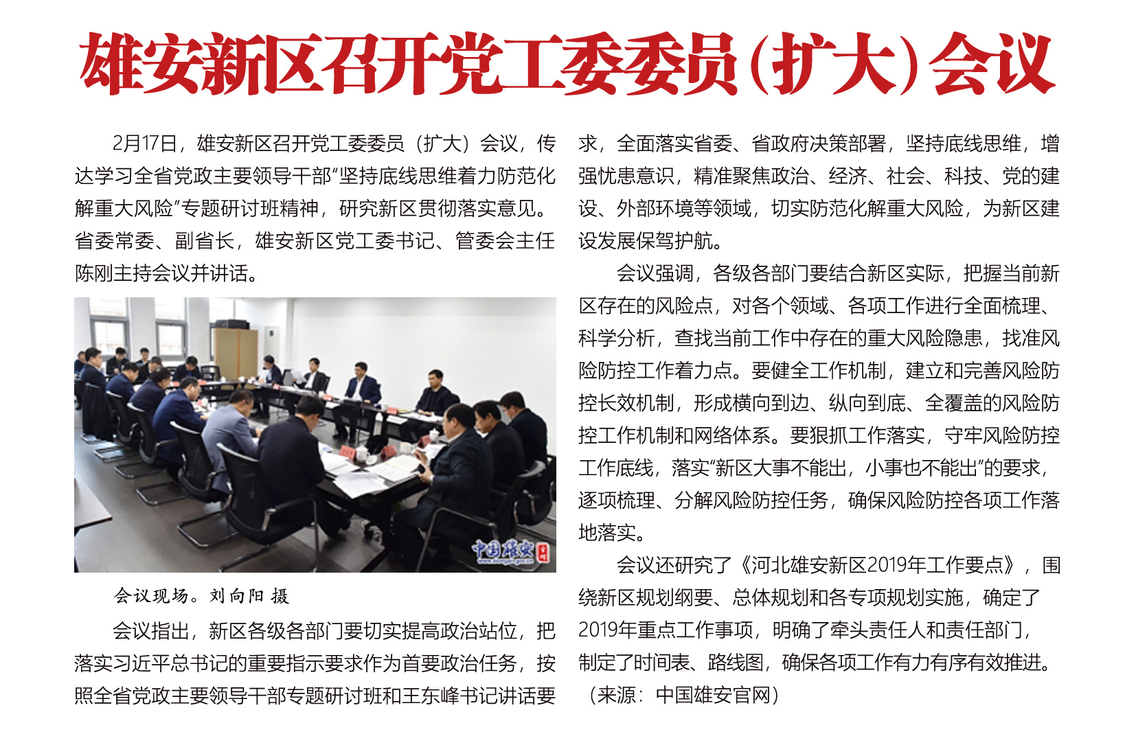 2月17日,雄安新区召开党工委委员(扩大)会议。