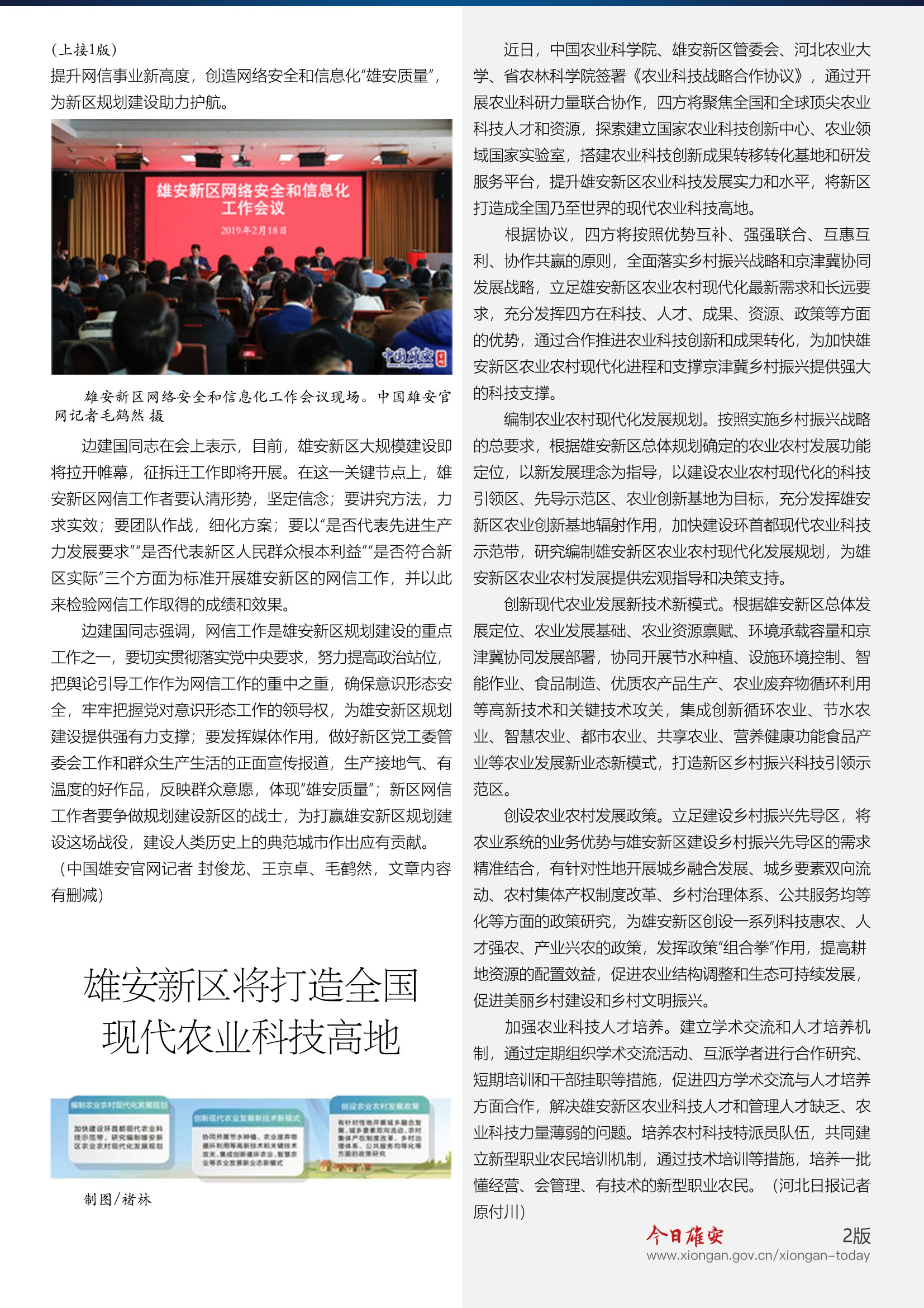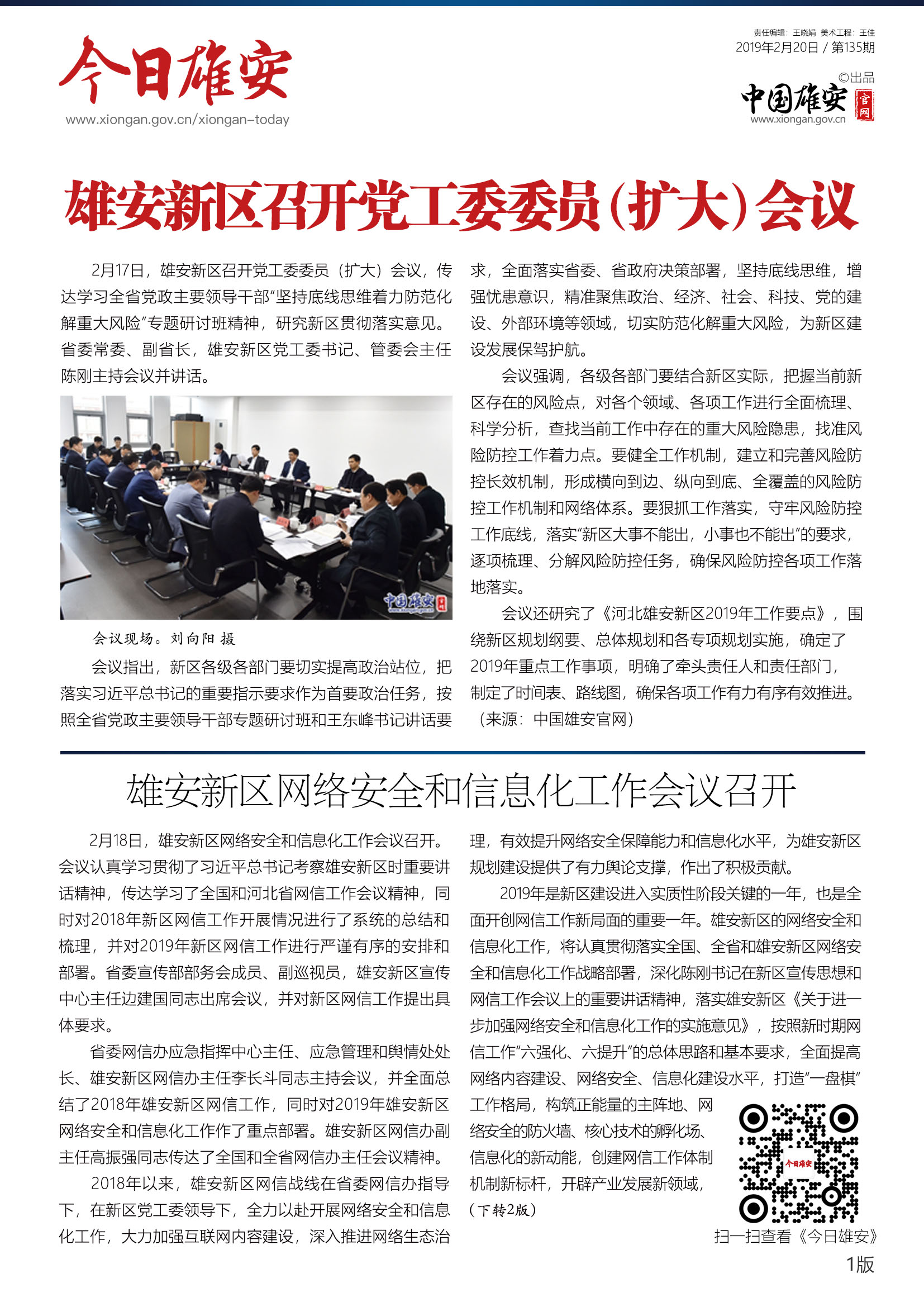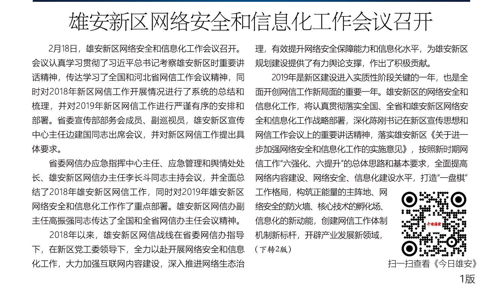 2月18日,雄安新区网络安全和信息化工作会议召开。