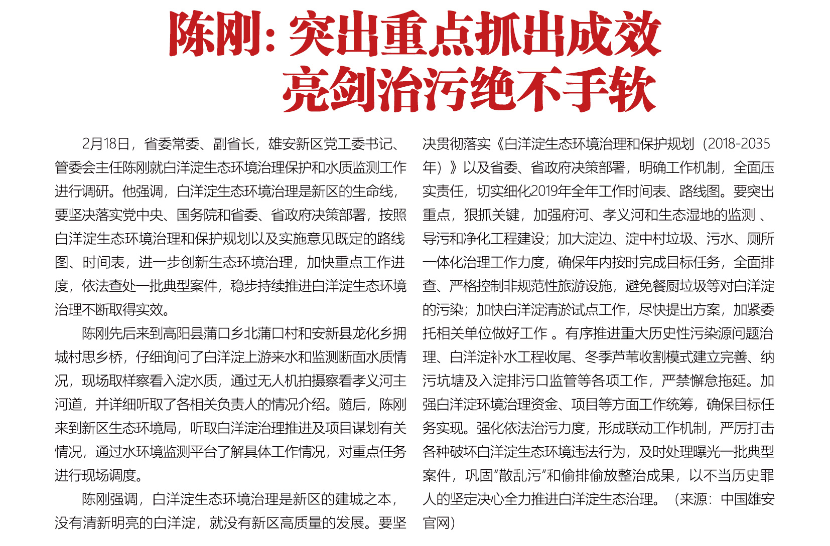 陈刚调研白洋淀生态环境治理保护和水质监测工作 突出重点抓出成效 亮剑治污绝不手软