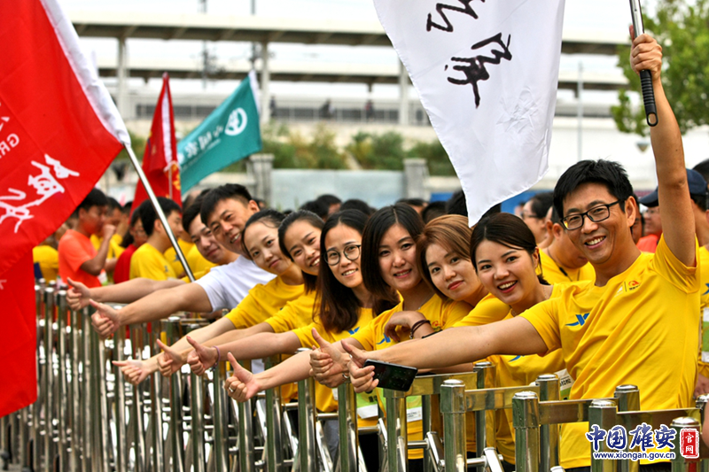雄安马拉松赛场上的李建河(右一)。李建河供图