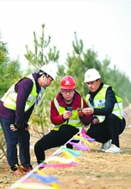 在雄安新区“千年秀林”,工作人员在验收植树造林项目。陈建宇摄/光明图片