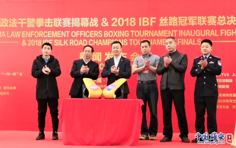 中国雄安官网2月26日电(记者朱伟琳)26日,全国政法干警拳击联赛揭幕战暨2018IBF(国际拳击联合会)丝路冠军联赛总决赛新闻发布会在雄安新区容城市民体育运动中心举行。