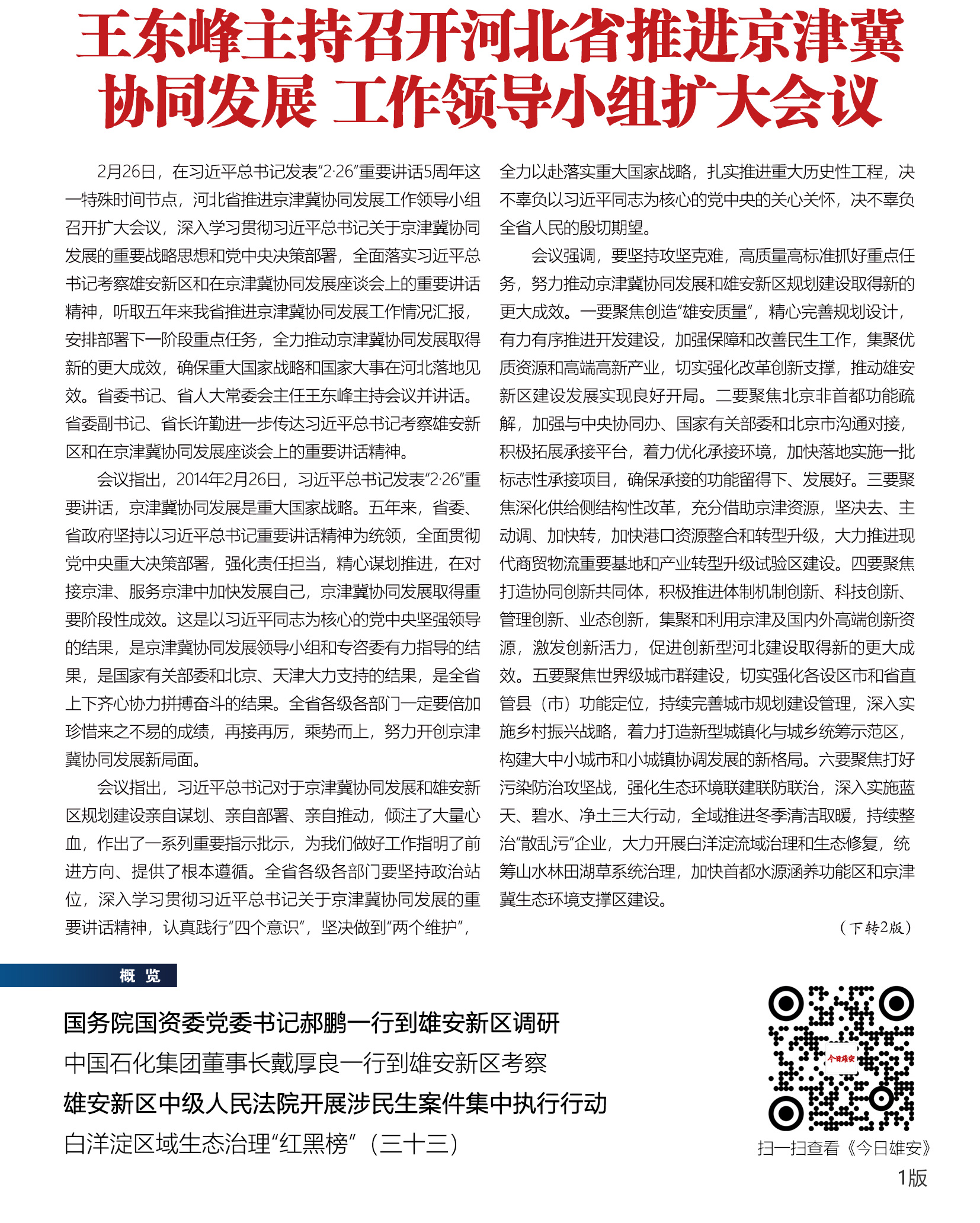 2月26日,在习近平总书记发表“2·26”重要讲话5周年这一特殊时间节点,河北省推进京津冀协同发展工作领导小组召开扩大会议。