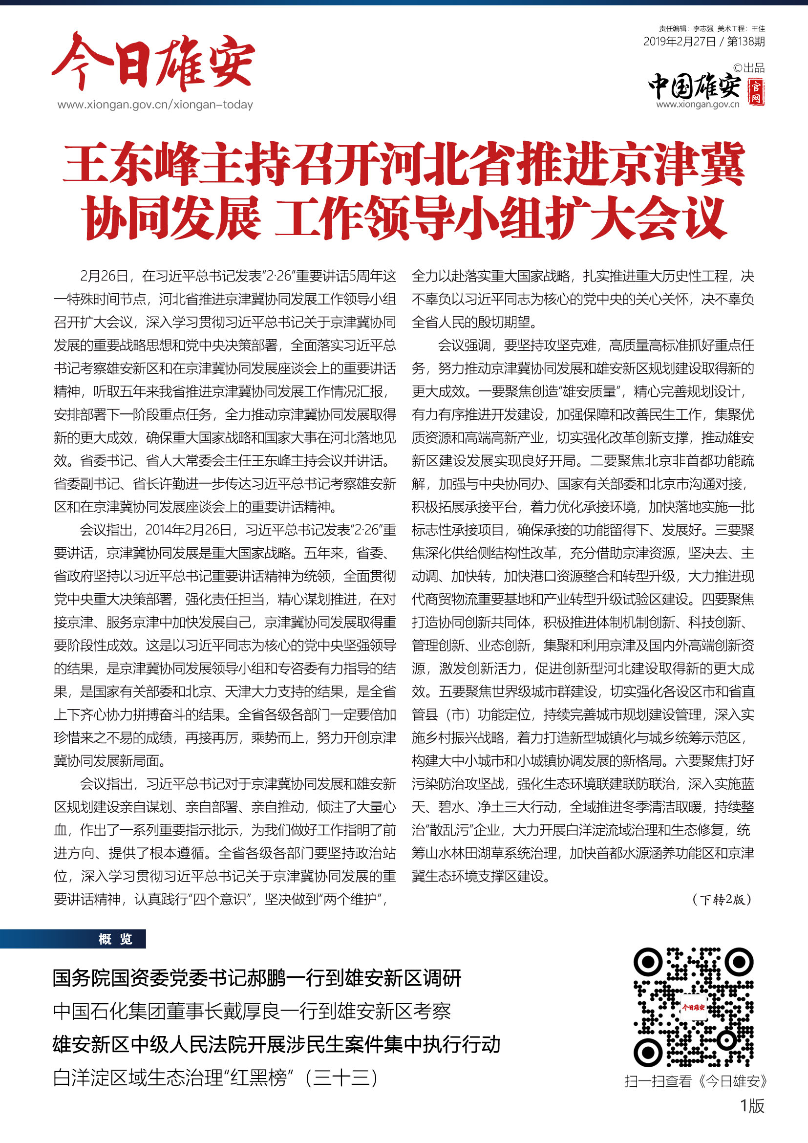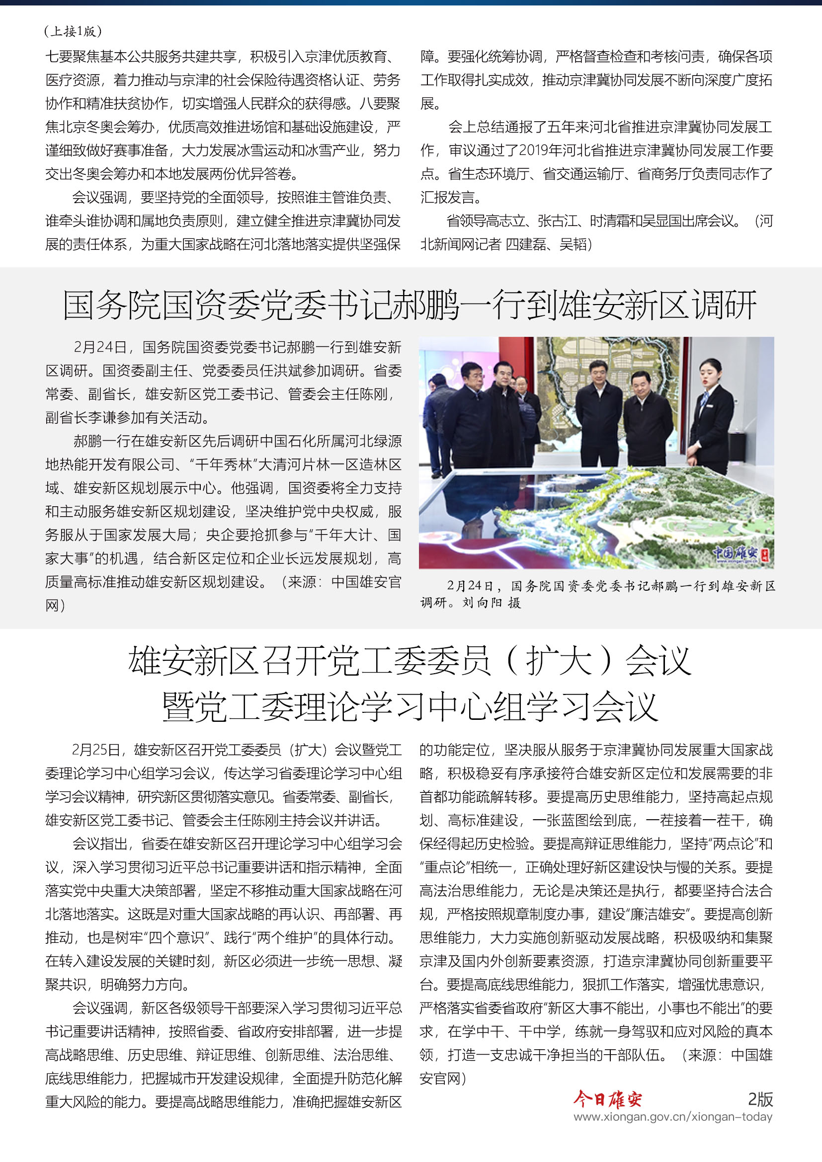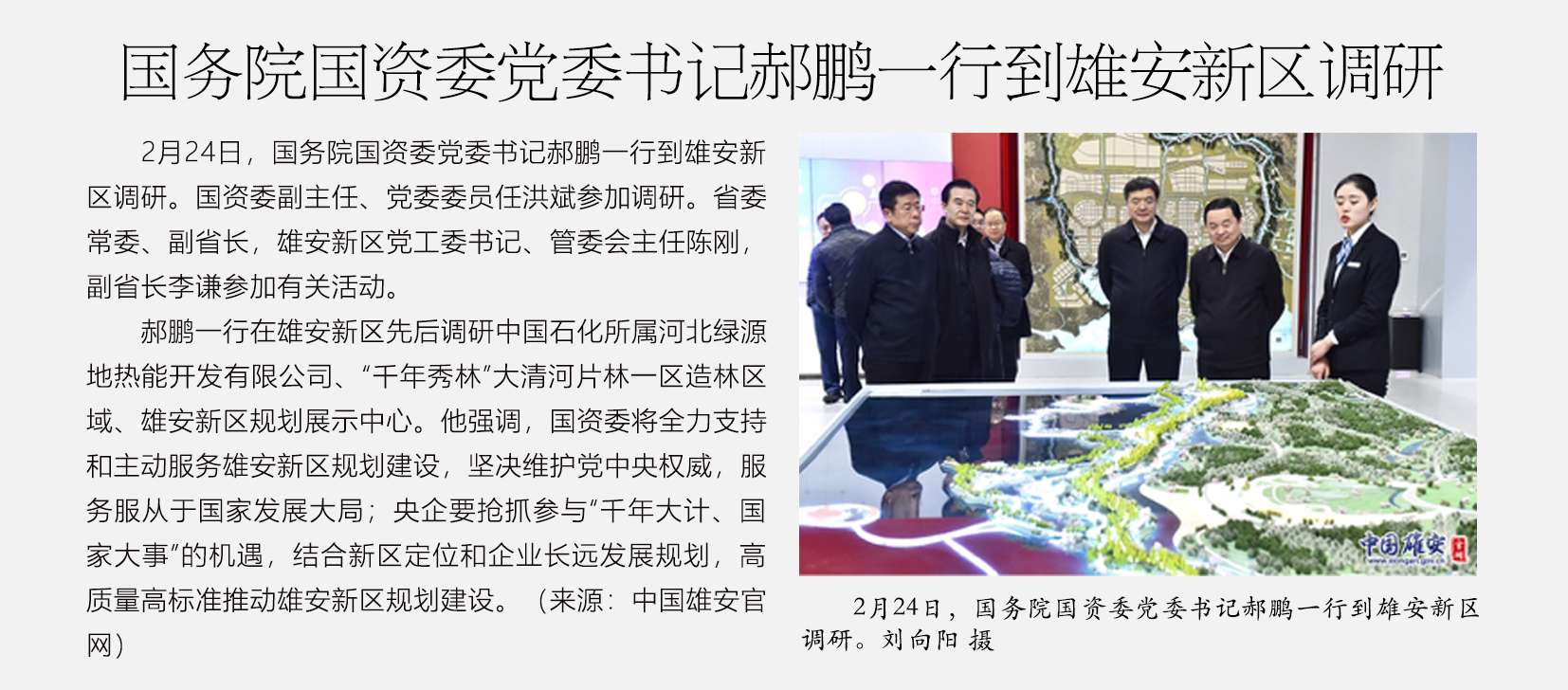 2月24日,国务院国资委党委书记郝鹏一行到雄安新区调研。