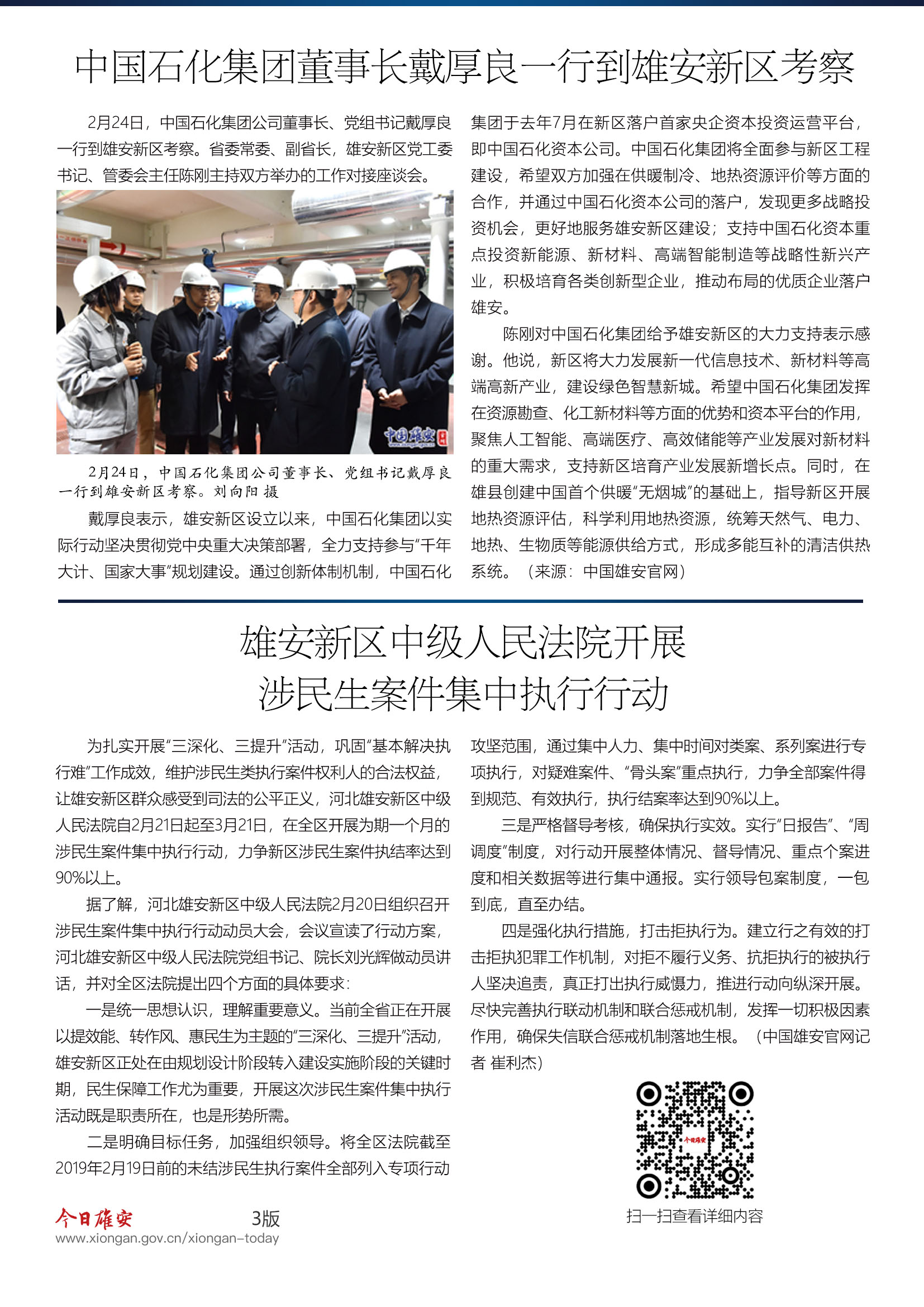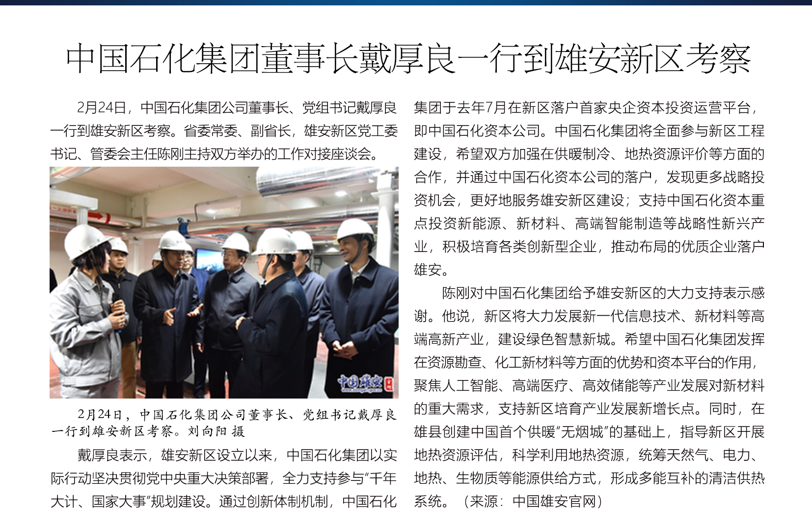 2月24日,中国石化集团公司董事长、党组书记戴厚良一行到雄安新区考察。