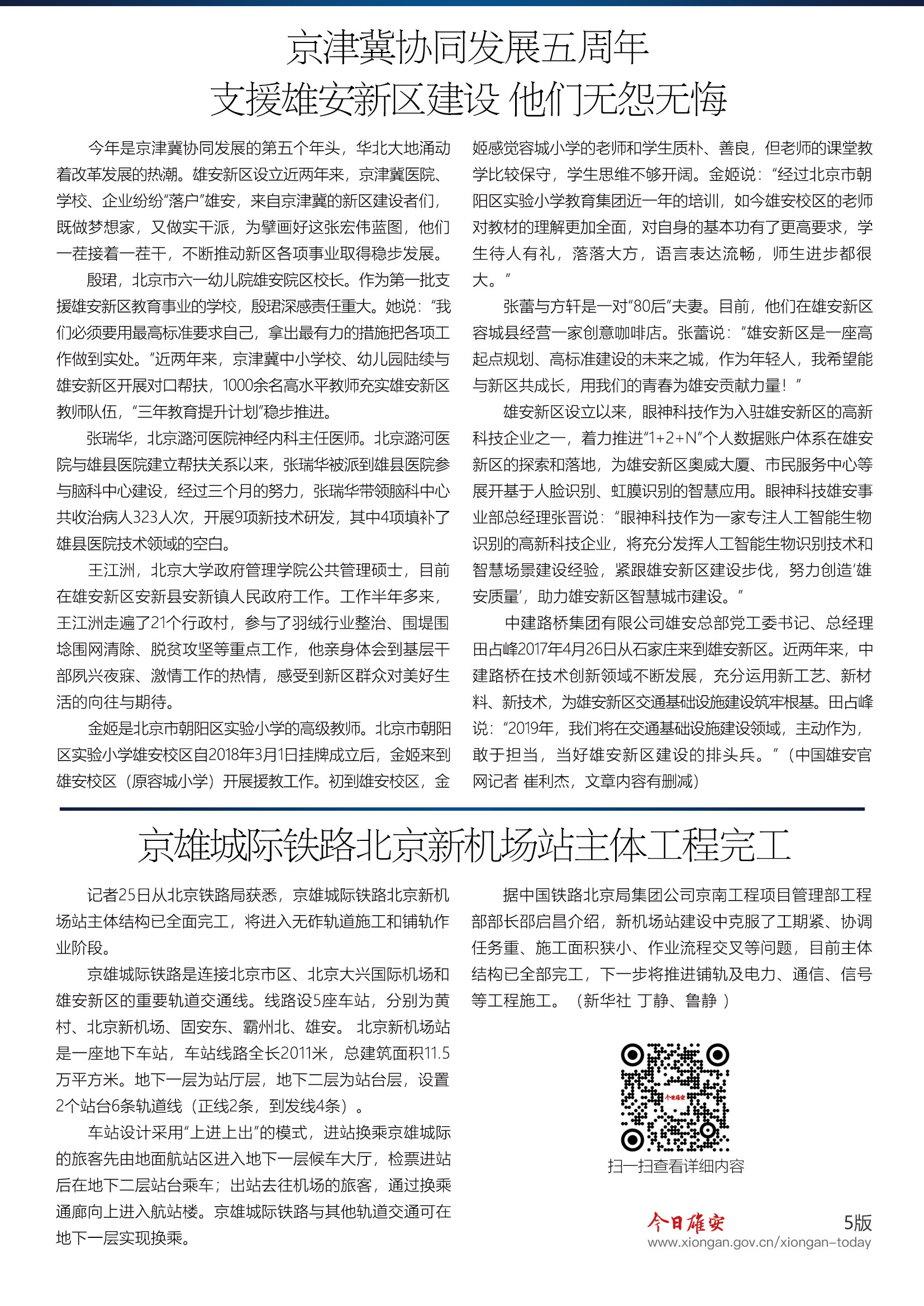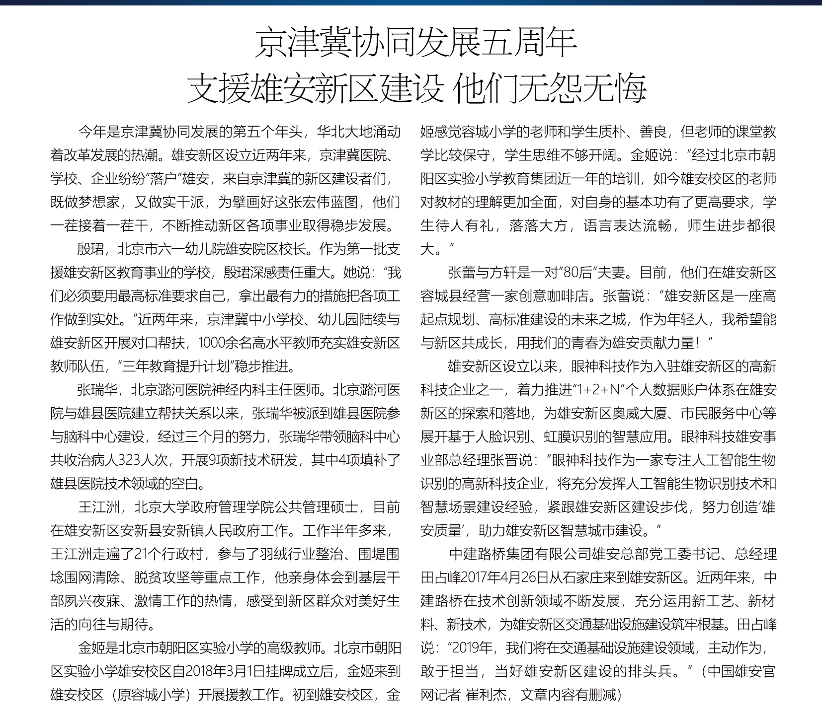 京津冀协同发展五周年丨支援雄安新区建设 他们无怨无悔