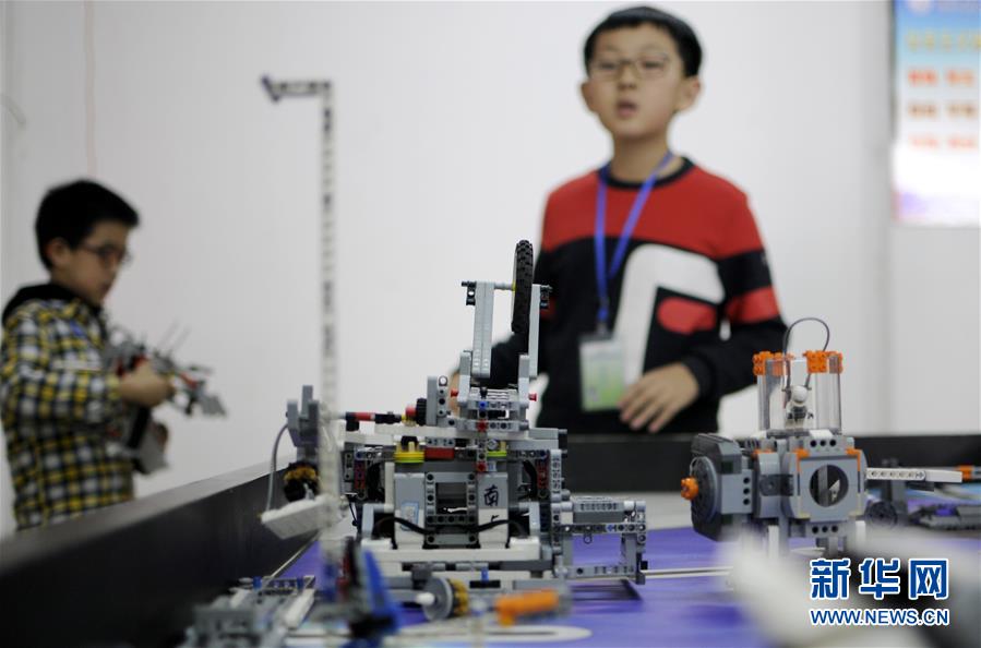 3月2日,一名参赛选手在比赛中关注自己的机器人。当日,河北邢台市举办青少年机器人竞赛,全市400多名中小学生组成163支代表队,参加了机器人创意比赛、教育机器人工程挑战赛等多个项目的角逐。新华社发(田晓丽 摄)