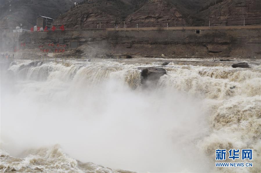 这是3月3日拍摄的黄河壶口瀑布。近日,随着气温回暖,受上游融冰开河速度加快影响,黄河壶口瀑布水量增大,气势磅礴。新华社发(苏强 摄)