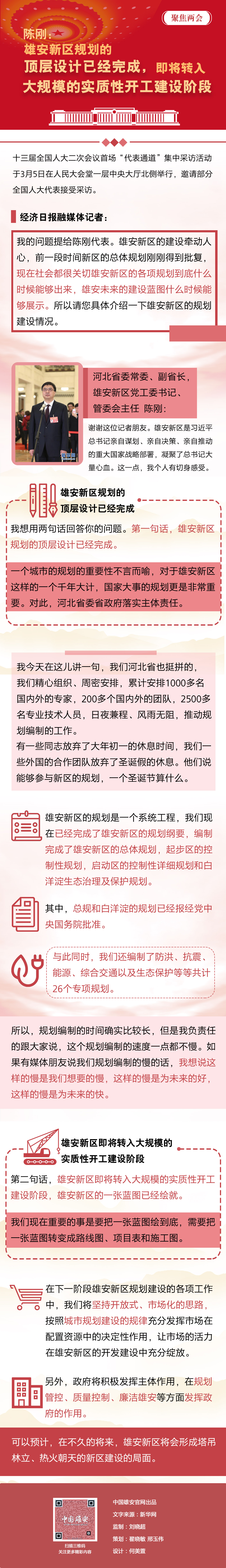 陈刚:雄安新区规划的顶层设计已经完成,即将转入大规模的实质性开工建设阶段