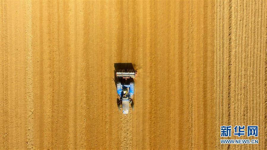 3月6日,山东省茌平县贾寨镇邢胡刘村村民驾驶拖拉机在田间劳作(无人机拍摄)。当日是二十四节气中的惊蛰,随着气温回升,各地农民忙着春耕春管,田间地头到处是一派忙碌景象。新华社发(赵玉国 摄)