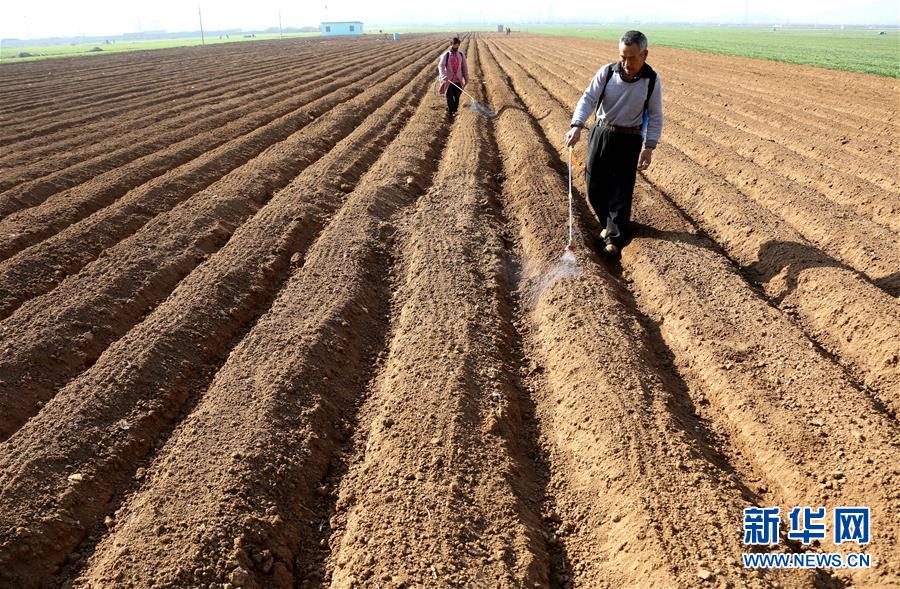3月6日,山东省枣庄市税郭镇潘官庄村农民在田间劳作。当日是二十四节气中的惊蛰,随着气温回升,各地农民忙着春耕春管,田间地头到处是一派忙碌景象。新华社发(孙中喆 摄)