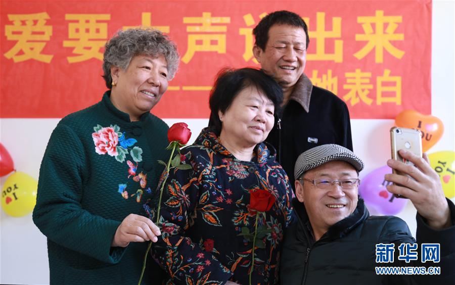 3月7日,居民在河北邢台市桥东区中北社区举行的迎接“三八”国际妇女节活动上自拍留念。当日,河北省邢台市桥东区中北社区开展“爱要大声说出来——向我的她表白”活动,迎接“三八”国际妇女节。 新华社发(张驰 摄)