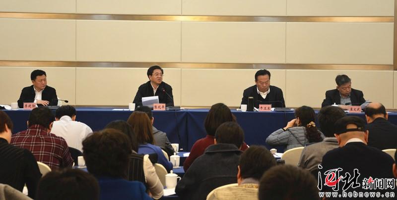 3月7日上午,河北省网信办主任座谈会在石家庄召开。图为省委宣传部副部长、省委网信办主任张砚平讲话。记者侯猛摄