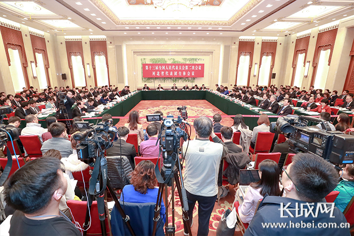 3月7日上午,出席十三届全国人大二次会议的河北省代表团在北京人民大会堂举行全体会议,继续审议政府工作报告,审查计划报告和预算报告,并对中外媒体开放,来自境内外媒体的记者到会旁听、采访。(庞晓玮)