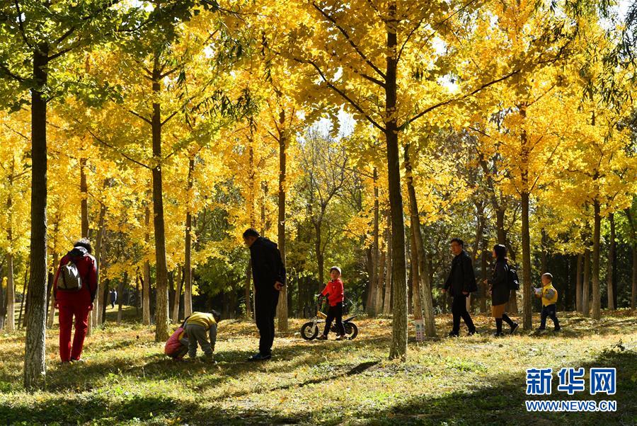 游客在北京通州大运河森林公园游玩(2018年10月27日摄)。2016年,通州被赋予新的历史定位——北京城市副中心,迎来历史性发展机遇。新华社记者 罗晓光 摄