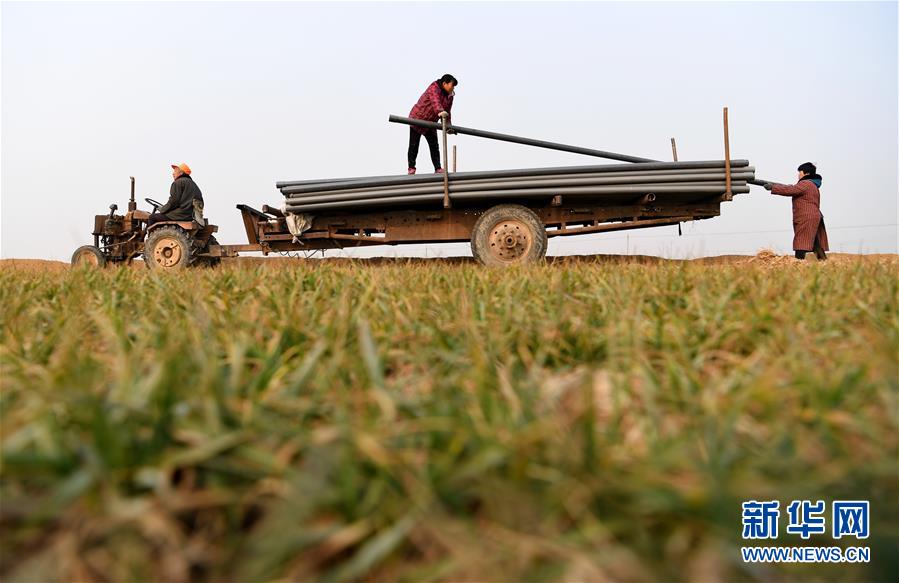 3月10日,工人在河北省巨鹿县柳洼村农田内铺设地下输水管道。目前,河北各地陆续进入春耕备播阶段,河北省巨鹿县涉农部门抢抓时机,兴修农田水利等基础设施,为全年农业丰收打好基础。新华社记者 牟宇 摄