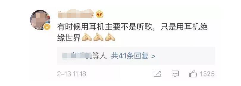 可对于耳机重度依赖者而言,它还有着更为重要的功能。微博上一位网友的解释赢得极大共鸣:“有时候用耳机主要不是听歌,是用它来隔绝世界”,坐在拥挤的地铁或公交上,戴上耳机,把音乐开到尽量大,就觉得这个世界再与我无关。
